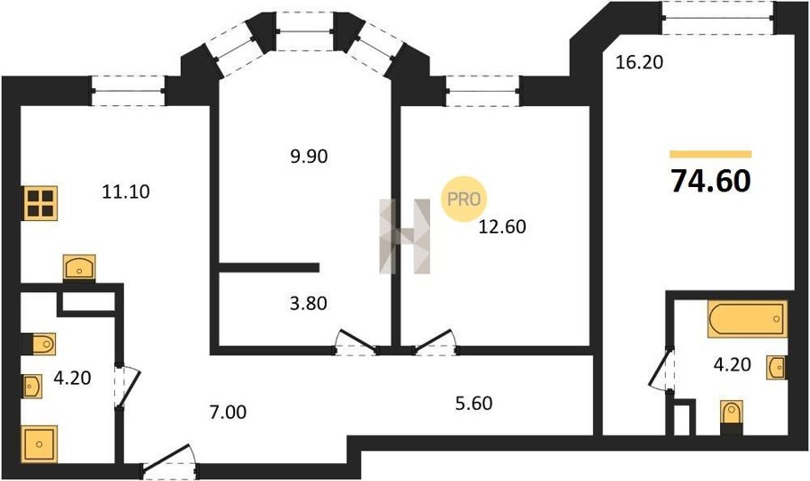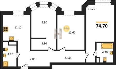 Площадь от 72.7 м2