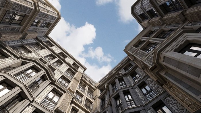 Облик комплекса создан мастерской Liphart Architects и унаследовал благородство петербургской традиции зодчества. Акцент на деталях, продуманный декор, панорамные окна с утонченными балконными решетками и мансардный этаж с террасами делают его неповторимым.